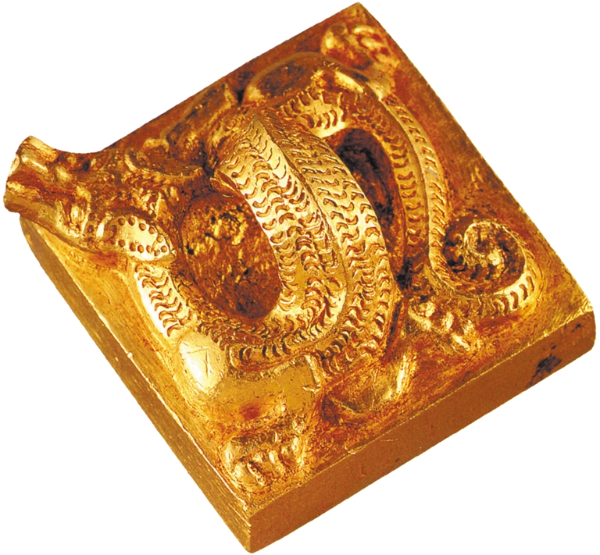 南越王墓还出土了“文帝行玺”金印,印钮是一条游龙,这是我国目前考古发现的最大的西汉金印。有研究表明,龙代表皇权,是西汉以后才逐渐形成的。考古发现的汉代众多诸侯王墓、列侯墓出土的器物中,龙纹随处可见,说明西汉早期龙纹尚未形成独尊地位。相比之下,在整个西汉考古发现的玺印中,南越文王赵眜的“文帝行玺”龙钮金印是非常独特的存在。