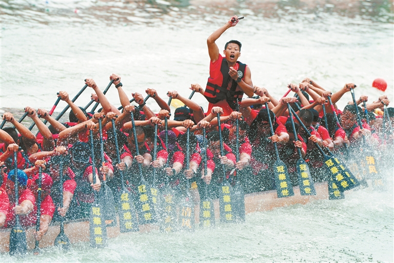 2008年,广州“扒龙舟”被列入广东省非遗代表性项目名录。广府地区许多龙舟队多次在大赛中获奖,成为岭南文化走向世界的使者。北京冬奥会开幕式上,一个龙头带着水花浮出水面,正是黄埔区非遗项目“龙舟龙头、龙尾制作技艺”传承人张伟潮的作品。