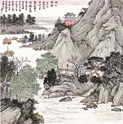 广东画家莫各伯作品《海山晓霁》。海山楼是宋代地方官招待外商的场所,曾位于现北京路附近。(广州十三行博物馆供图)