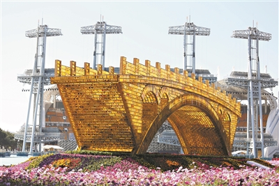 艺术家舒勇创作的大型雕塑作品《丝路金桥》(资料图片)