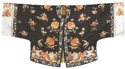 清末蓝缎地广绣花蝶纹对襟汉式氅衣