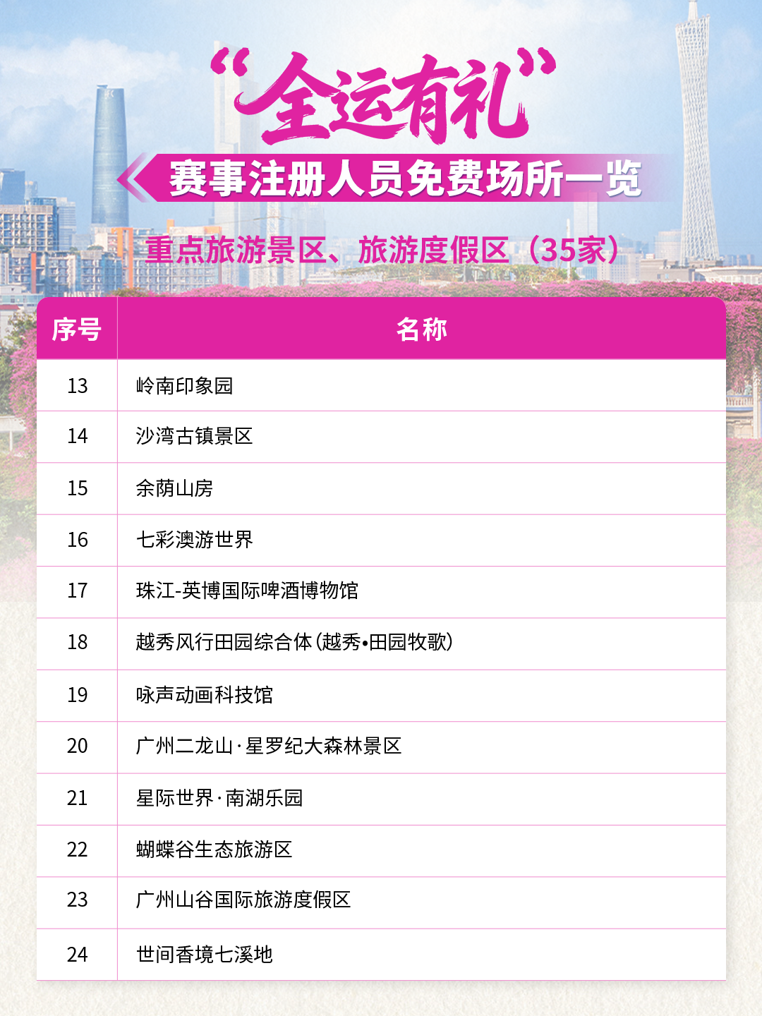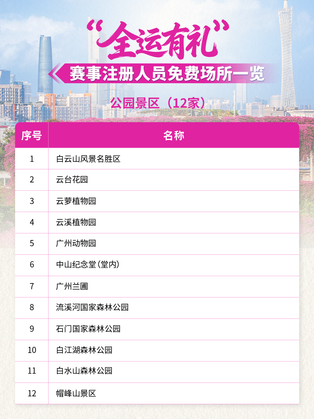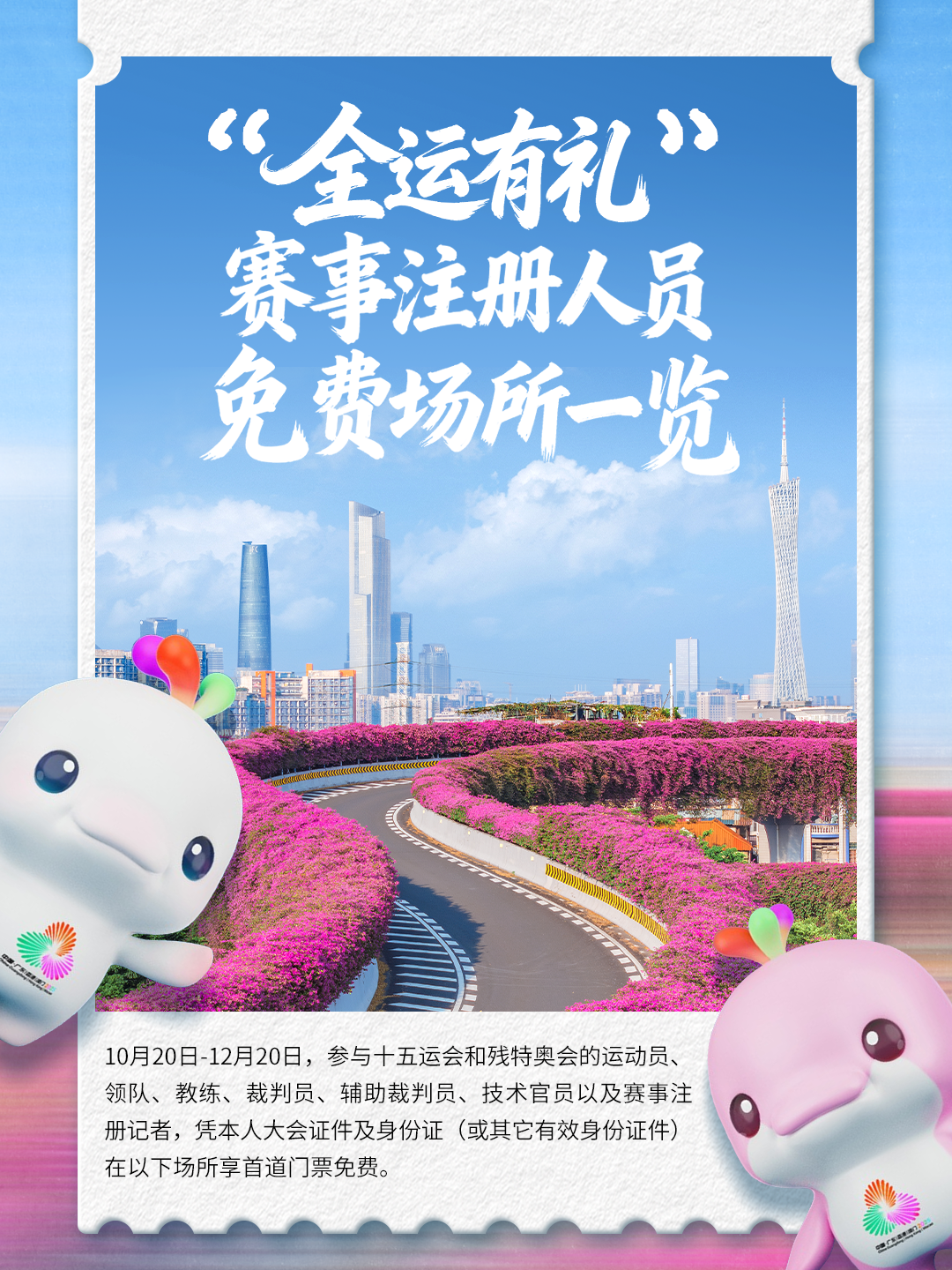 全运倒计时!59家景区/场所联合献礼!10月20日-12月20日期间参与十五运会和残特奥会的运动员、领队、教练、裁判员、辅助裁判员、技术官员以及赛事注册记者,凭本人大会证件及身份证(或其它有效身份证件),在这些场所可享首道门票免费!