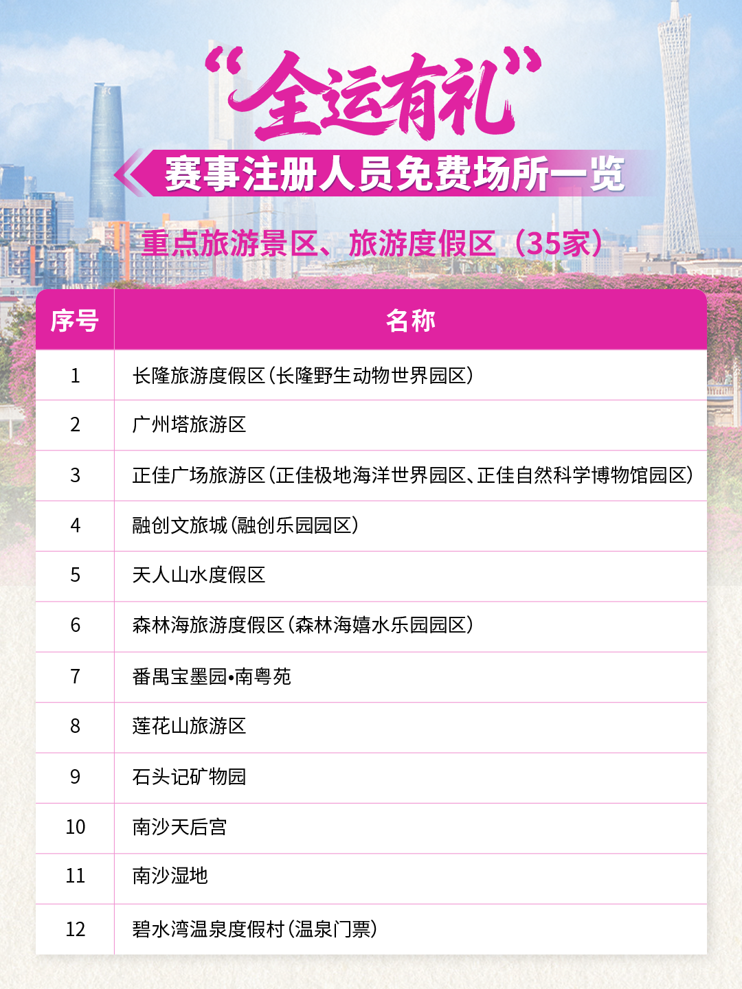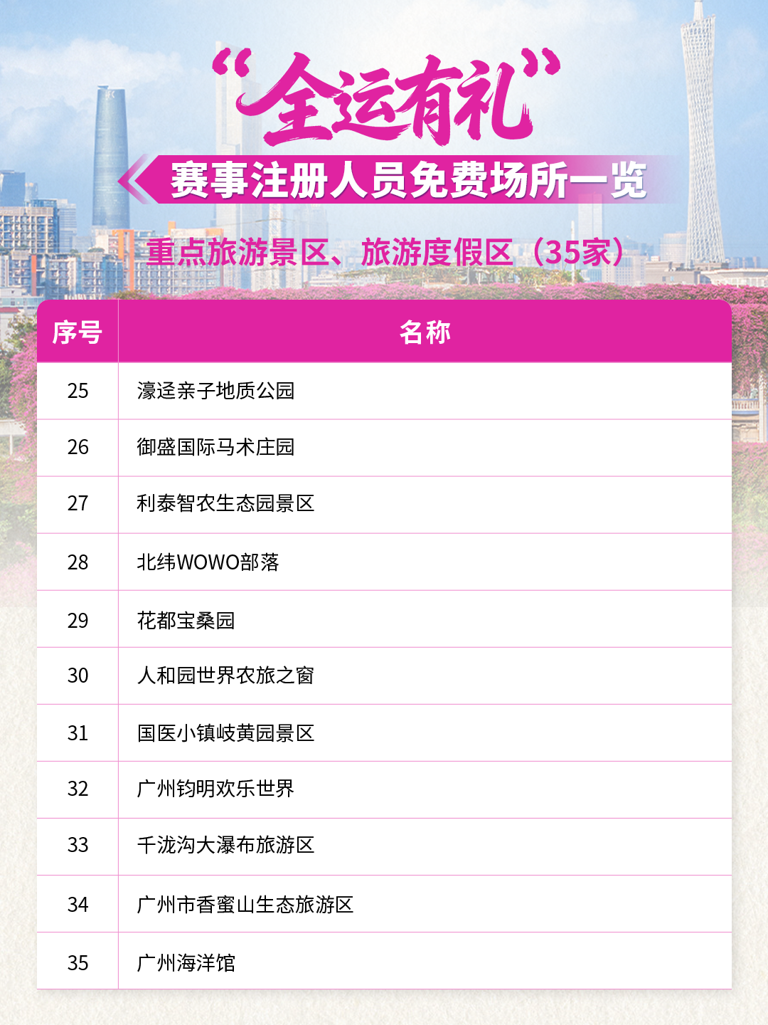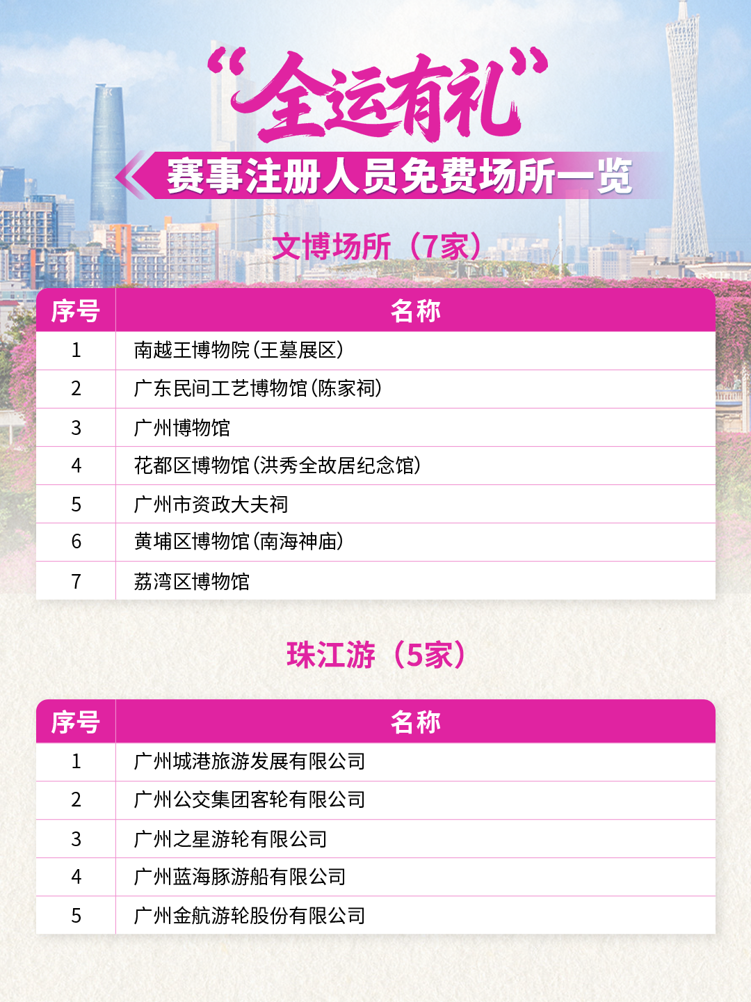 全运倒计时!59家景区/场所联合献礼!10月20日-12月20日期间参与十五运会和残特奥会的运动员、领队、教练、裁判员、辅助裁判员、技术官员以及赛事注册记者,凭本人大会证件及身份证(或其它有效身份证件),在这些场所可享首道门票免费!
