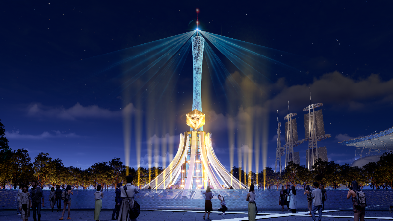 主会场设于广州新中轴线上的花城广场与海心沙亚运公园,涵盖36组灯光艺术作品。其中,广州塔、东塔(周大福金融中心)、西塔(国际金融中心)将首次联动上演灯光秀。