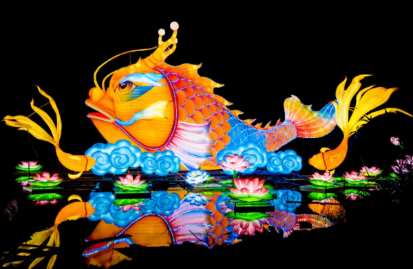 走进占地800亩的灯会园区,一条2.5公里的主游线蜿蜒向前,仿佛一条流淌的“时光之河”。本届灯会遵循中华传统美学“起承转合”的叙事节奏,巧妙设置五大主题展区,引领游客开启一场跨越千年的文化漫游。