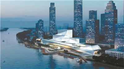 “三馆合一”项目造型像一块游浮于水面而无畏融化的冰凌,又似乘风破浪的帆船。