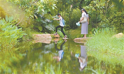 市民到海珠湿地公园游玩