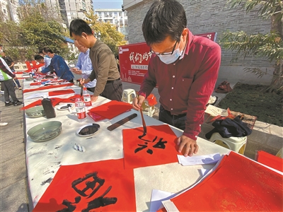 2月6日下午,“我们的节日·春节”之“妙笔生花贺新春”文明传播活动在荔湾区永庆坊新时代文明实践站举行,6位广州书法大咖即席挥毫,送“福”字、送春联,通过新花城APP、大洋网等全媒体平台直播,浓浓年味飘进千家万户。