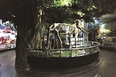 今天地球最繁盛的生物种群之一是人类。伴随着远古人类前进的步伐,有许多史前巨兽成为了时光中的残影。馆内一件来自山西河曲的巴氏剑齿虎化石,让我们看到那如尖刀般锋利的上犬牙的凶悍。巴氏剑齿虎化石非常稀有,完整骨架化石更是弥足珍贵。这是目前全国第一具完整的剑齿虎骨架化石。