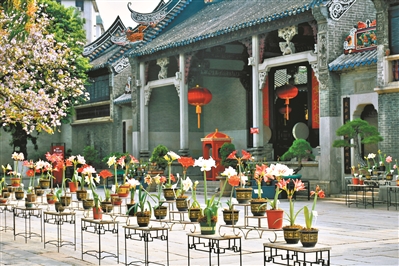 这些展出的精品花卉与余荫山房古色古香的建筑相得益彰,结合园内应节而开的风铃木、洋紫荆、簕杜鹃、木棉等花卉,更营造出春意融融之感。