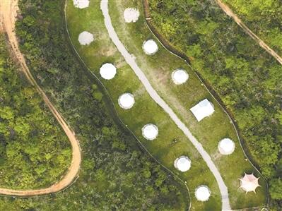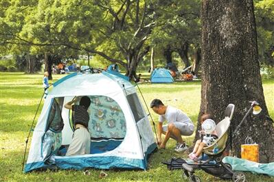 增城山间小路边,露营帐篷整齐有序,市民在青山间呼吸新鲜空气