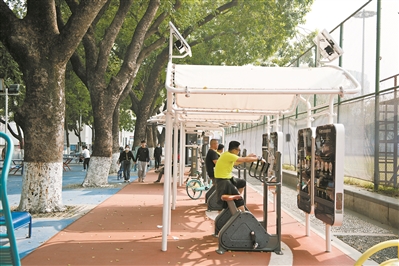 经过4次升级改造,天体健身路径占地达到1000平方米,是集运动、竞赛为一体的健身场地,智能健身器械提供了趣味竞赛模式,可以现场组团竞赛、线上跨时空比拼等,打破了“场馆思维”。