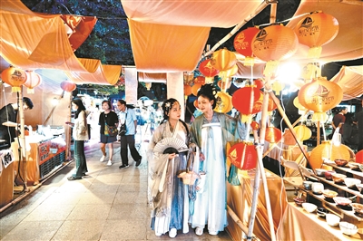 五仙观南粤先贤馆广场开设了海丝主题复古文创市集。
