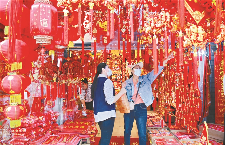 春节临近,神州大地年味渐浓。图为1月18日,市民在广州一德路选购春节饰品。