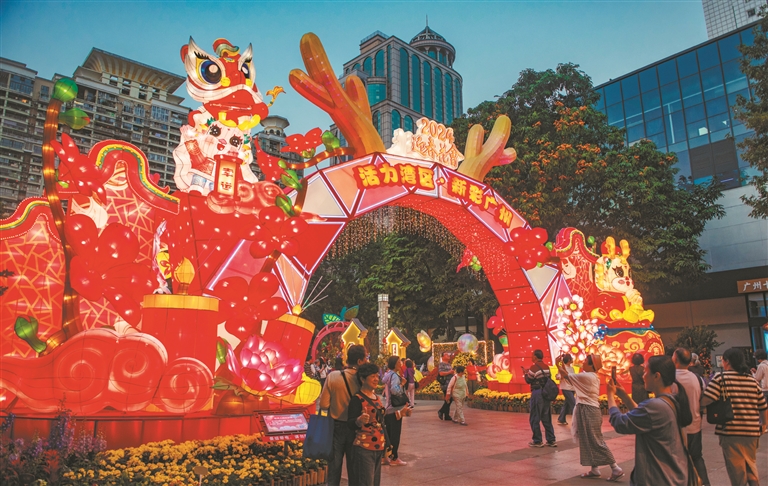 2月21日18时,广州文化公园2024年元宵灯会正式亮灯。本次灯会以“活力湾区 新彩广州”为主题,亮灯时间为2月21日至2月24日晚。作为迎春花会的压轴重头戏,本次元宵灯会的主题花灯融入时花造景,春花灯彩共生辉,营造“月上柳梢头,人约黄昏后”的唯美浪漫,将春节的喜庆气氛推向高潮。
