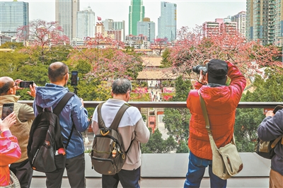 农讲所是“英雄花开英雄城”2024广州传承弘扬红色文化系列活动中8个“红棉之旅”最佳体验观赏点之一,农讲所内有两棵树龄超过百年的红棉树。有着朱漆红墙、琉璃黄瓦的农讲所,与怒放的红棉交相辉映,融成一幅古朴端庄的画卷。经过摄影专家前期选点,找到了拍摄农讲所红棉的最佳观赏拍摄点,是相隔中山四路的大塘街珠江·星火1926。大赛期间,主办方还将联合共青团广州市越秀区委员会、大塘街团工委在珠江·星火1926合作开展“名师影像公益课——跟着大师拍红棉”,邀请摄影名师为广大摄影爱好者分享红棉拍摄技巧。