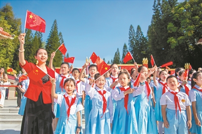 10月1日,“激扬爱国心 唱响强国歌”升国旗、唱国歌仪式暨爱国歌曲传唱活动在广州起义烈士陵园正门举行。