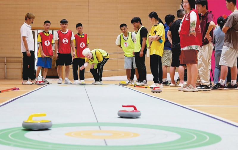 6月16日,在广东省培英职业技术学校,全国校园冰雪运动专家委员会专家成员、国家级冰壶裁判员史春燕给师生们带来了一场关于旱地冰壶项目的专题讲座,全方位展示了旱地冰壶的比赛过程、发展历史、规则及意义。“这项运动一般分为轮椅公开组、听力残疾组和智力公开组,比赛时分成两队比拼,每人连续投两壶,双方交叉投壶,对于参与者的体能要求非常低,是一项需要个人技术与团队战术配合的运动项目。实验表明,长期玩这项运动,对于提高智力有帮助,也是一项适合所有年龄段人群玩的社交体育运动。”史春燕介绍道。