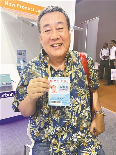 密克罗尼西亚联邦客商Mr.Fu是一名华裔,长期从事密克罗尼西亚联邦等太平洋岛国的贸易。在广交会新能源展区的蓝晶易碳新能源有限公司展台前,他正准备采购一些样板回去给岛民试用感受一下。