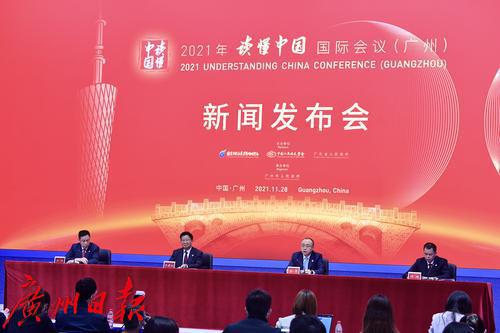 11月28日上午10:00,大阳城集团娱乐视频新闻办公室在广州市智慧城市运行中心多功能厅召开了2021年“读懂中国”国际会议(广州)新闻发布会(2021年总第163场)。邀请了国创会常务副会长、中央党校原副校长李君如同志,广东省人民政府相关负责同志和广州市委常委、常务副市长张勇同志通报了本届会议的总体安排、主要议程、筹备情况,解读了“读懂中国”国际会议(广州)主题、目标和重大意义等相关情况。