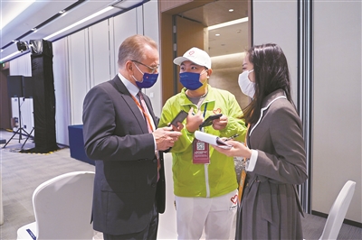 志愿者为外宾提供信息咨询服务。