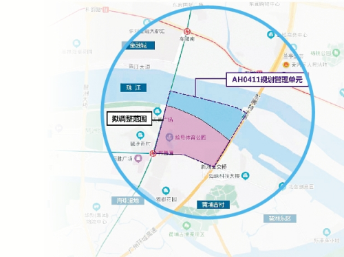 据了解,地块位于广州环城高速以西、新港东路以北,保利天悦以东,西南侧紧邻地铁4号、8号线万胜围站。控规调整范围为项目所在的AH0411规划管理单元,单元面积119.5公顷,项目地块用地面积73.2公顷。地块现状除了已建成的保利天幕广场外,大部分为农地,地势平坦;西北侧为车陂路-新滘东路隧道建设干坞工程临时施工用地,东南侧为东围村村民住宅及旧厂房。