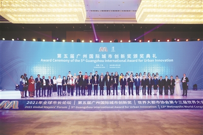 12日晚,第五届广州国际城市创新奖(简称“广州奖”)颁奖典礼暨2021年全球市长论坛及世界大都市协会第十三届世界大会闭幕式在广州越秀国际会议中心线上线下融合举行。中国重庆、黎巴嫩丹尼区、厄瓜多尔基多、奥地利维也纳、塞内加尔圣路易斯5个城市荣膺第五届“广州奖”,印度奥里萨邦摘得本届“网络人气城市”奖。