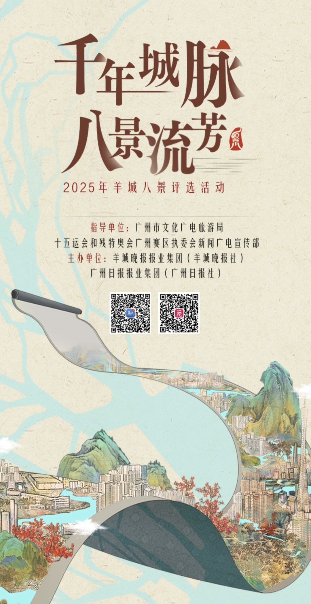 千年城脉,八景流芳。今年四月,由广州市文化广电旅游局、十五运会和残特奥会广州赛区执委会新闻广电宣传部指导,羊城晚报报业集团和广州日报报业集团联合主办的2025年“羊城八景”评选活动正式启动。