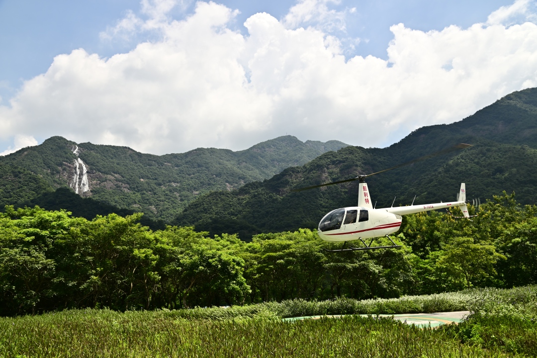 评审专家体验白水仙瀑景区直升机观光项目。