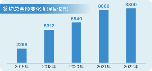 来自花城的十年之约,迎接朋友的诚意与实力,与岁月共长。从广州国际投资年会签约的项目数看:2015年40个、2016年98个、2020年226个、2021年183个、2023年443个——稳步增长的数量,意味着广州朋友圈的持续扩大;从签约总金额看:2015年2298亿元、2018年5312亿元、2020年6540亿元、2021年8600亿元、2022年8800亿元——真金白银的分量,代表着投资者们给广州投下的信任票。