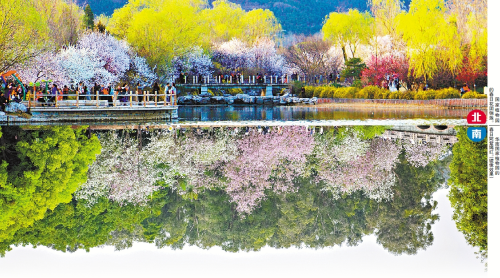 在高质量推进城园融合建设中,国家植物园持续开展彩化植物的研究推广,让人民群众春天能看到更多的花、秋天看到更多的彩叶、冬天看到更多的绿色。为了增加春季可观赏植物数量与种类,国家植物园还持续开展对新优植物的引种、研究,目前已拥有观赏桃品种70余个,是世界上拥有观赏桃品种最多的植物专类园。同时以国际海棠登录中心为依托,加强对海棠的研究、培育、收集和展示。目前已经集中收集了来自世界各地的200余个品种的观赏海棠,自主培育了“胭影”“雪柱”等海棠新品种,为彩化北京做出贡献。