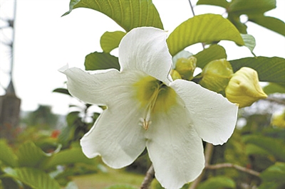 值得一提的是,在藤本植物园还能欣赏到与清明花同科同属的断肠花,花身素白,同样在清明时节开放。据闻它是家族里面的佼佼者,皮肤与树汁接触引起痛痒,误食树叶可中毒致死。与身边“柔弱”的藤本相比,它显得刚强、硬挺,同时它的枝干弯弯曲曲,像个舞者,身姿优美。更美的是断肠花碧绿的叶片,还有它酷似白裙子的素雅大花,相映成趣。