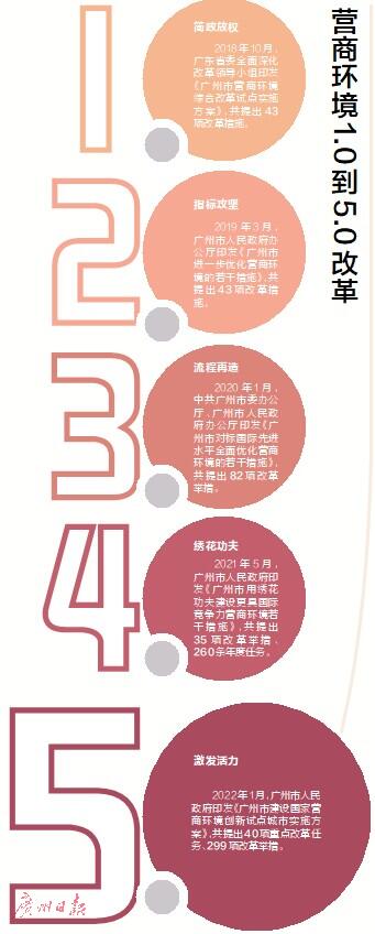2021年9月,广州入选全国首批营商环境创新试点城市。以此为契机,广州营商环境改革再次翻开新篇章,以“激发活力”为主线,迈入5.0时代。今年1月,广州印发《广州市建设国家营商环境创新试点城市实施方案》,共提出40项重点改革任务、299项改革举措,以制度创新为核心,着力破除阻碍市场主体投资兴业的体制机制障碍,更大力度激发市场主体活力和社会创造力。