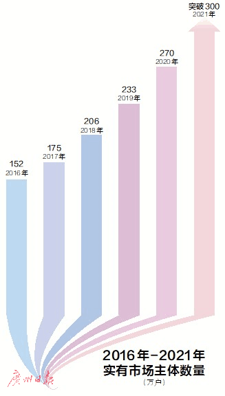 践行新理念,争当领头羊。2018年起,广州持续推进营商环境改革从1.0到5.0迭代升级,出台《广州市优化营商环境条例》,构建国际一流营商环境的脚步不断加快,市场主体活力迸发。截至今年8月底,全市市场主体总量达到309万户,1至8月新登记企业数量居全省第一。