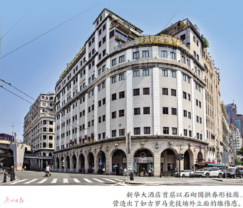 新亚大酒店采用陶立克式柱、爱奥尼克式柱两种类型的罗马柱,十分典雅