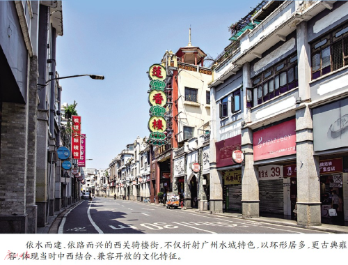 依水而建、依路而兴的西关骑楼街不仅折射广州水城特色,以环形居多,更古典雍容,体现当时中西结合、兼容开放的文化特征;既有巴洛克风格的罗马柱、卷曲花纹等,也采用了中式清水砖材料、满洲窗等。民间工艺、岭南文化、美食老字号等聚集,构成了西关的民俗风情。行走其间,犹如触摸一段段羊城往事,是商业的味道,更是生活的气息。