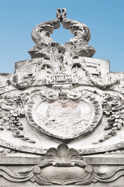 广州恩宁路的一栋骑楼屋檐上以“羊”为元素的石雕装饰