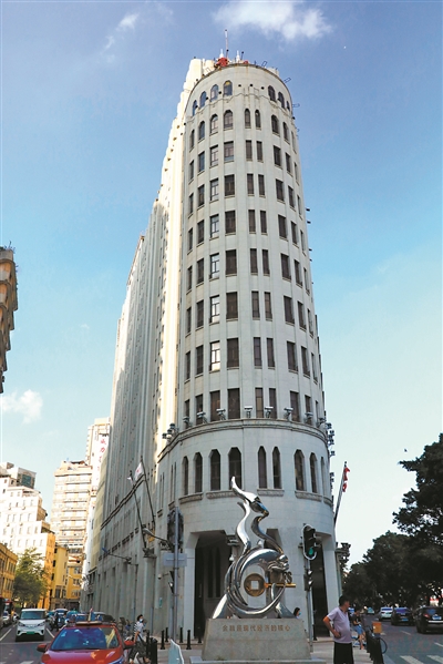 爱群大厦立面以垂直构图为主,设以仿哥特式窗,底层骑楼柱廊也处理为仿哥特式窗形式