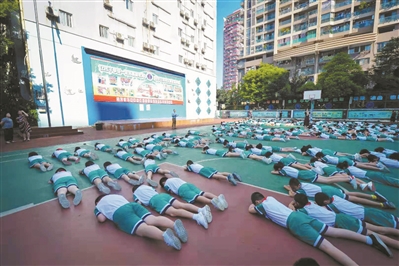 广州市各中小学同步开展防空袭紧急疏散掩蔽演练。