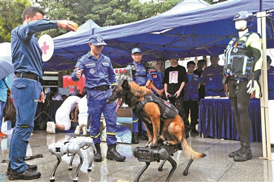 现场安排了精彩纷呈的活动。主舞台区,广东蓝天救援队进行搜救犬搜索活动演练,展示了搜救犬“小马”如何通过捕捉空气中弥漫的细微气味来引导训导员接近“掩埋”人体的地方,从而在各种灾难救援现场发挥独特作用,“小马”受到大批市民热捧。