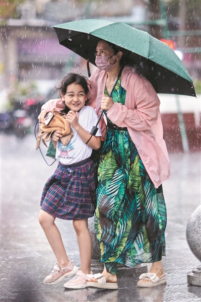 前日傍晚,受台风影响,广州下起大雨,路上行人冒雨前行