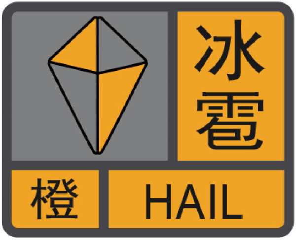 冰雹预警信号分二级,分别以橙色、红色表示。