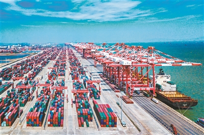 繁忙的广州港南沙港区(资料图片)
