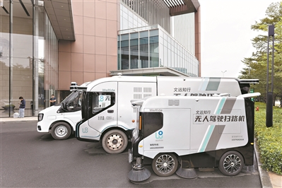 无人驾驶小巴穿梭在干净的街道上,用于清洁主干道的大型自动驾驶扫路机、清扫人行道的扫地机让道路干净整洁……11月14日,在广州国际生物岛文远知行总部楼下,记者亲身感受无人驾驶为城市生活带来的改变。