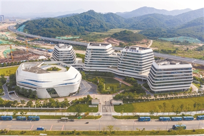 图为广州中新知识城南起步区,依山而建的国家知识产权局专利局专利审查协作广东中心。