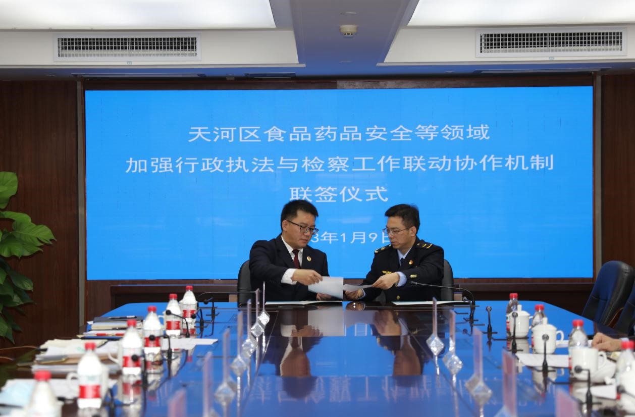 近日,天河区市场监管局与天河区人民检察院联合召开加强行政执法与检察工作联动协作机制座谈会,双方围绕加强市场流通行业领域行政执法与刑事司法衔接工作开展深入的探讨交流。