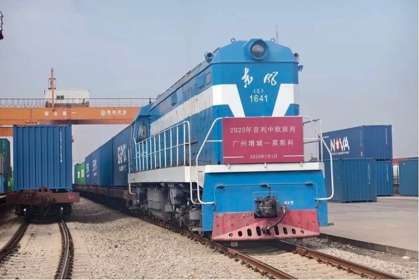 图:2025年元旦当天,两趟国际班列从广州东部公铁联运枢纽(增城西站)接连出发。