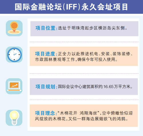 未来国际金融论坛(IFF)永久会址项目将助推广州南沙实现核心金融会展功能、金融创新功能、综合服务功能、生活服务功能四大功能,成为全球金融战略对话平台、全球金融高端合作平台、全球金融创新实践平台、全球金融智库决策平台、全球金融人才储备平台。