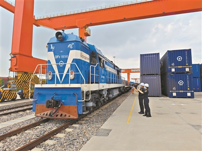 广州海关所属广州车站海关在广州国际港对中欧班列进行监管