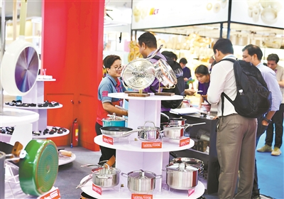 记者发现,进口展的品牌锅具大多比较注重细节。在Bedndes Kueche Limited的展台,一款木质手柄的平底锅吸引了不少采购商的目光。该公司亚太区业务发展经理林暐尧告诉记者,这根木柄是从德国一个著名的木材产地制造再进口的,这在锅具上是比较精致的设计。而SILAMPOS的销售人员贾子则向记者展示了煮面锅、汤锅、平底锅等,其共同特点是锅盖和锅身都如镜面一般平滑,“这就可以兼顾美观和密闭性。”